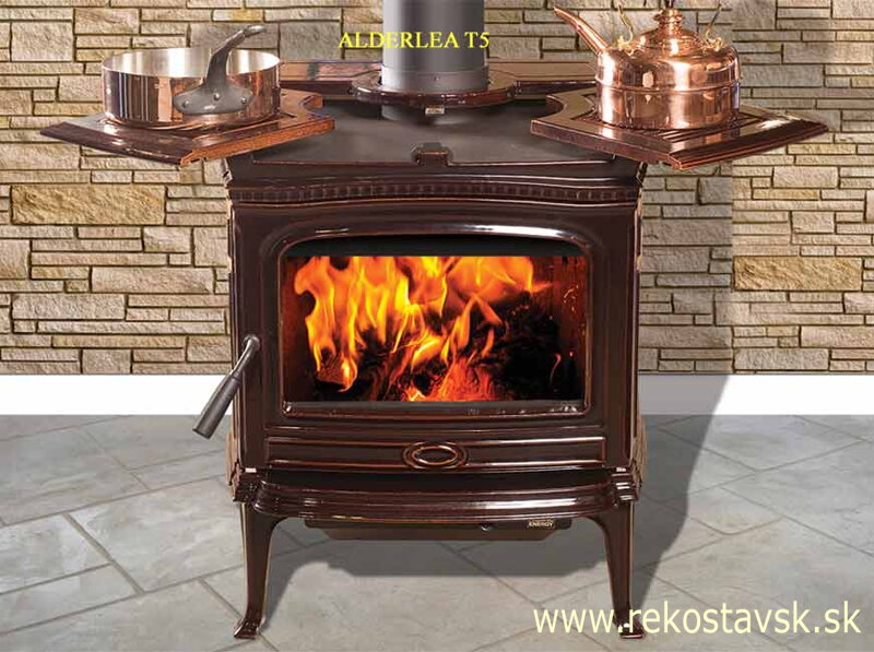 Elegantný, historický štýl liatinového prevedenia, sálavé a konvekčné teplo, obrovské sklo pre nerušený pohľad na oheň, platňa na varenie, ohrievacie teleso s osvedčený ľahkým zakurovaním, čisté, dlho trvajúce hrenie s 30 rokmi technológie kachiel na spaľovanie dreva, to sú charakteristické vlastnosti modelu Alderlea T5.